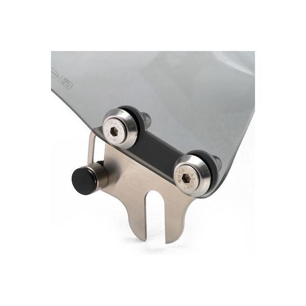 デイトナメーカーお問い合わせ:0120-60-4955【商品説明】アメリカンからネイキッドまで、車種を問わず幅広く取り付けることができる汎用スクリーン。スクリーン取付角度は微調整可能。汎用フィッティング付属。●汎用の小型スクリーン 高さ295×幅323(mm)●形状:ハーフラウンド形状●取付:ヘッドライトステークランプタイプ●材質:アクリル製●スクリーン色:セミスモーク※ セミユニバーサル商品です。ヘッドライト回りの形状により一部取り付けできない車両もあります。※ W650、400はライトステーが凹型なので市販のスペーサーが必要です。