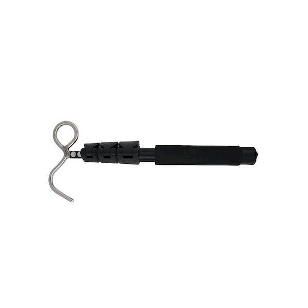 土牛産業メーカーお問い合わせ:0794-82-0880【商品説明】●特長●伸縮シャフトにより携行可能です。●従来の玉掛用の手鉤より、コンパクトかつ軽量になりました。●リング形状により、カラビナ工具差しで携帯できます。●ロック式シャフトのため、吊荷やワイヤーロープの押し止め引きが可能です。●仕様、規格●シャフト部:4段伸縮ロックシャフト●シャフト寸法(約):290~730mm●リングサイズ(約):H26×W29mm●フック部分幅(約):54mm●全重量(約):170g