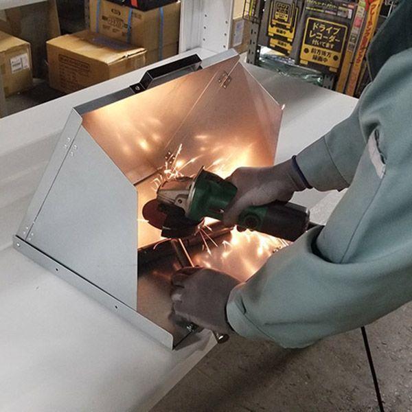 アイガーツールメーカーお問い合わせ:0256-32-4071【商品説明】●高速切断機の火花飛散防止に。●市販の305mm、355mmの切断機に使用できます。●ディスクグラインダー、溶接機、プラズマカッターなど使用時の火花飛散防止に。●※切断機は別売りです。 【仕様/規格】●収納時サイズ:350mm×355mm×30mm●組みたて時(底板展開時)サイズ:650mm×355mm×330mm●組みたて時(底板折りたたみ時)サイズ:350mm×355mm×330mm●重量:3.2kg●材質:クロムフリー材(耐指紋コーティング)