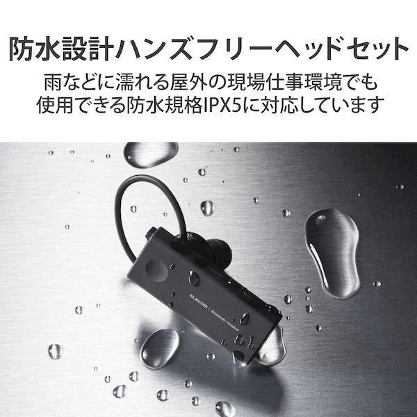 エレコムメーカーお問い合わせ:0120-898-794【商品説明】●雨などに濡れる屋外の現場仕事環境でも安心して使用できる、防水規格IPX5に対応した防水設計のBluetoothハンズフリーヘッドセット。●USB Type-C(TM)ポートを搭載し、充電用ケーブルのUSB Type-C(TM)コネクタは、ウラ、オモテに関係なく挿入可能です。●スマートフォンと対応ケーブルを接続することで、スマートフォンからも本製品を充電可能です。※すべてのスマートフォン及び充電ケーブルでの充電を保証するものではありません。●耳の形状に合わせ斜めに角度を付けた耳栓タイプで、装着感と密閉感が高く、雨や騒音時でも聞き取りやすいです。●イヤーキャップはフィット感が選べるようにS・M・Lサイズが付属しています。●イヤーフックは3次元的にデザインすることで耳へのストレスを軽減し、また耳周りの形状に沿わせるようにカーブさせることで、長時間の装着でも快適に使用可能です。●左右それぞれの耳に対応するイヤーフックを付属しているため、左右どちらの耳へも装着可能です。●ボタン1つでiPhoneのSiri(R)やAndroidスマートフォンのGoogle アシスタントを簡単に呼びだすことができます。●携帯電話やスマートフォンなど、通信機器2台を同時に待ち受けできるマルチポイントに対応しています。●最大連続待受約120時間、連続通話約5時間、連続音楽再生約5時間の長時間駆動を実現します。●iPhoneとの接続時はiPhone画面へのヘッドセットのバッテリー残量表示が可能です。●取扱説明書記載のQRコードから、はじめてBluetooth(R)ヘッドセットをお使いの方でも簡単に安心して設定ができる簡単接続ガイドが確認可能です。●※USB Type-C and USB-C are trademarks of USB Implementers Forum