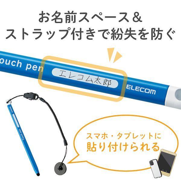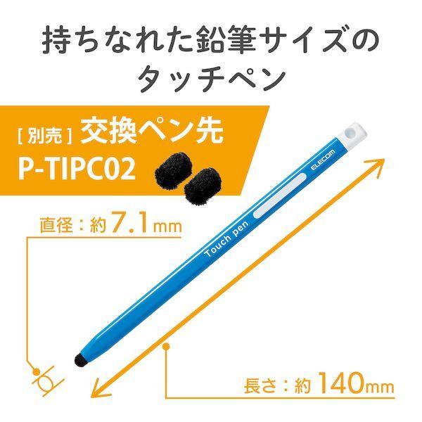 エレコムメーカーお問い合わせ:0120-898-794【商品説明】●三角形で、持ちやすい形状のスマートフォン・タブレット用タッチペンです。●小さな力で書けるので、筆圧が弱かったり、筆記具を持ちなれていないお子様に最適です。●名前を記入するスペースが付いており、お子様がタッチペンを紛失してしまうのを防ぎます。●ペン先に高密度ファイバーチップを採用し、超感度を実現。●高密度ファイバーチップにより、軽い力で滑らかな操作が可能です。●ペン先に植毛された繊維が広範囲の接地面積を確保することで、ペン先を押し当てることなく、滑らかに操作できる超感度を実現しました。●指先でのタッチ操作と違い、液晶画面を汚さずに操作が可能です。●タッチ操作はもちろん、スライド操作も快適に行えます。●※フィルムの種類によっては、操作時にこすれ音が生じたり、ペンの反応が悪くなることがあります。●ペン先が劣化した際に別売のペン先(P-TIPC02)に交換できて、快適な操作感を維持できます。●タブレットなどに装着できるストラップがついています。