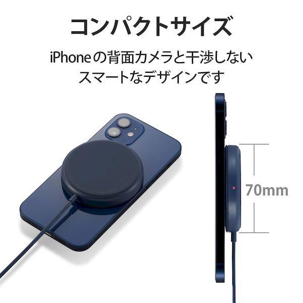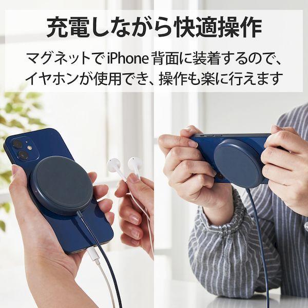 エレコム ELECOM W-MA01NV ワイヤレス充電器 5W マグネット内蔵 卓上 ケーブル一体型 iPhone Airpods 1m ネイビー