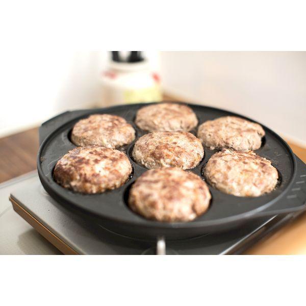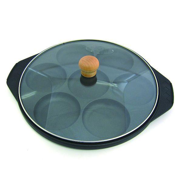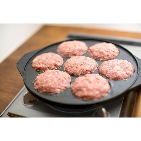 杉山金属メーカーお問い合わせ:06-6909-7031【商品説明】●同じサイズのパンケーキが7個も作れるプレート!●パンケーキを作って積み重ねたらあこがれのパンケーキタワーに!●イングリッシュマフィンやバンズ、ライスバーガーや挟む具材を作るのに最適サイズ!オーブンにも使えます。【材質】●表面加工/ふっ素樹脂塗膜加工(内面)●材料の種類/本体:アルミニウム合金、蓋:強化ガラス、蓋つまみ:天然木