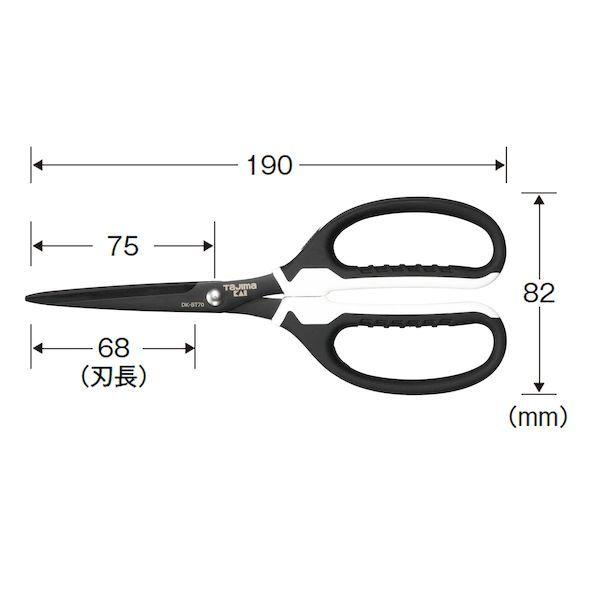 (株)TJMデザインメーカーお問い合わせ:0120-125577【商品説明】●特徴●幅広テープ(50mm)も1回で綺麗に切れる長刃設計●強粘着テープでも糊が付きにくいフッ素コート●手袋着用でも滑りにくい ラバーグリップ●細い線も滑らず切れる 根元ギザ刃装備●仕様、規格●サイズ 全長190mm 刃長68mm●製品重量(g):82●切断対象:テープ類、細線(撚り線2.0mm?以下)、PPバンド●材質●SUS420J2●PP+GF10●TPR(エラストマー)