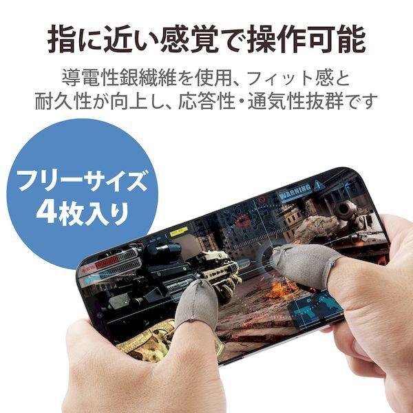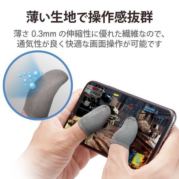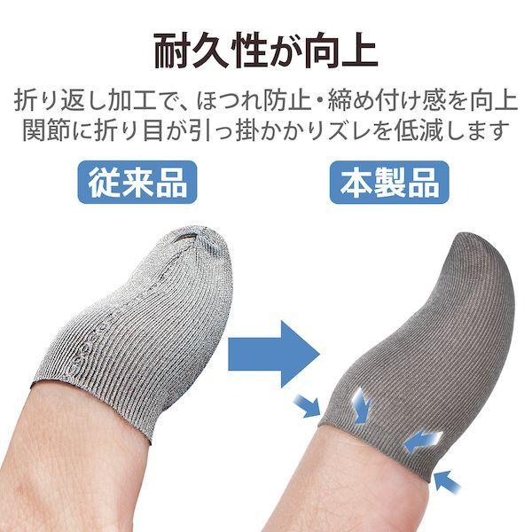 エレコムメーカーお問い合わせ:0120-898-794【商品説明】●フィット感と耐久性を向上させた、応答性、通気性抜群の極薄導電性銀繊維仕様のゲーミングフィンガーキャップ(フリーサイズ)です。●折り返し加工により、締め付け具合を向上させ、裁ち端のほつれを防ぎ、耐久性を向上させています。●第1関節に折り目部が引っかかることで、長時間使用によるズレを低減します。●薄さ0.3mmの伸縮性に優れた繊維なので、指に近い感覚で画面操作が可能です。●繰り返し洗浄可能です。●導電性繊維100%●※使用開始時はきつめですが、徐々にご使用者の指のサイズになじみます。