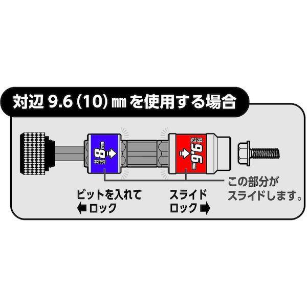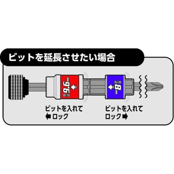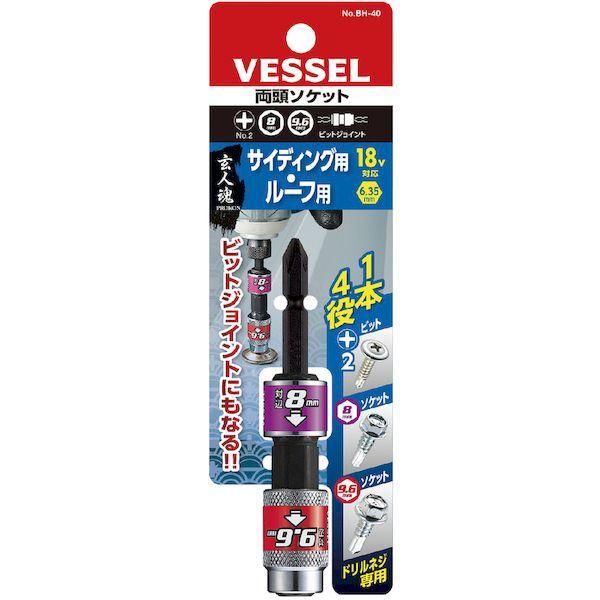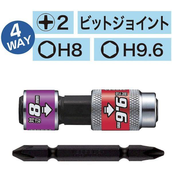 ベッセルメーカーお問い合わせ:0120-999-914【特長】●両頭ビット+ソケット2種+延長ジョイントの機能を1本でこなせます。●現場での作業で多くの工具を持ち歩かなくてよくなります。●カチッと確実にロックでき、紛失を防止します。【用途】●サイディング、ルーフのドリルネジの締め付け、ドライバービットの延長やドリルビットの延長に。●鉄工ドリルは6ミリまで、木工ドリルは12ミリまで。●ソケットビットは連結して使用できません。【仕様】●全長(mm):65●対辺寸法(mm):8、9.6●適応ねじ:+2【仕様2】●本体:リン酸マンガン処理【材質/仕上】●クロムモリブデン鋼●ビット:ビット材【セット内容/付属品】●付属ビット:(+2)×65mm【注意】●正しい用途・サイズ・使い方を確かめてご使用ください。●使用後、製品や電動ドライバーが高温になり、やけどの恐れがありますので十分ご注意ください。●ビットの取付、交換は確実におこなってください。●使用時は保護メガネを着用してください。●改造、加熱はおこなわないでください。【原産国】中国