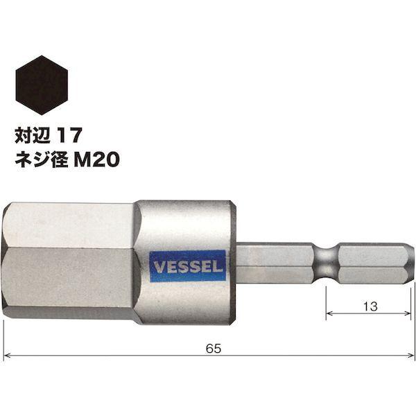 ベッセルメーカーお問い合わせ:0120-999-914【特長】●六角穴付きボルト、六角穴付き止めねじ用のビットです。●10色カラーでサイズを色分けし、ビットが選びやすくなっています。●ビット材はダイハード鋼(最高硬度HRC62)を使用しています。●強くてしなやかなで耐久性は抜群です。●六角面にカラー印刷しており、塗装品のようなにじみがなくシャープなエッジです。●精緻な刃先加工で高い嵌合性を実現しました。●刃先部分にはメッキや塗装がつかないためねじとの食いつきが良く、様々なねじにフィットします。【用途】●建築、電気、機械組立・整備、精密組立、DIYに。【仕様】●対辺(mm):17●全長(mm):65●刃先:マグネットなし●色:青●セット内容(本):1【仕様2】●ダイハード鋼●先端:マグネットなし●差込軸:6.35mm●18Vインパクト対応●片頭【材質/仕上】●ダイハード鋼(最高硬度HRC62)【注意】●作業時は、保護メガネを着用してください。●必要以上に無理な力で使用しないでください。●工具は、本来の使用目的以外で使用しないでください。●電流が流れているものには使用しないでください。●正しい用途・サイズ・使い方を確かめてご使用ください。【原産国】日本