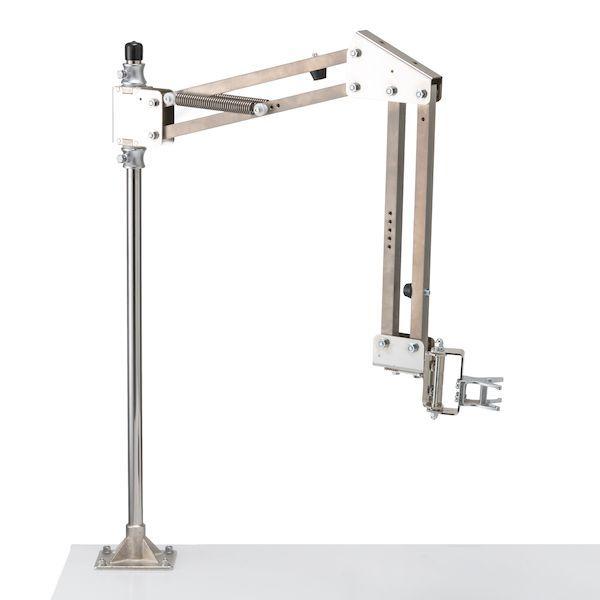 ベッセルメーカーお問い合わせ:0120-999-914【商品説明】●手腕のように自在に動く、ツールアーム。●垂直を保って真っすぐにネジ締めでき、精度アップ。●メッキ部品を使用し、塗装剥がれを嫌う電子分野に最適。●ツール取付部が旋回するので、移動の多い作業でもツール操作が容易。【用途】●生産ラインやセル作業台などで作業環境の改善に。【素材特記事項】※電動ドライバーは別売です。●取付工具外径:35~45mm●可動範囲:450~600mm