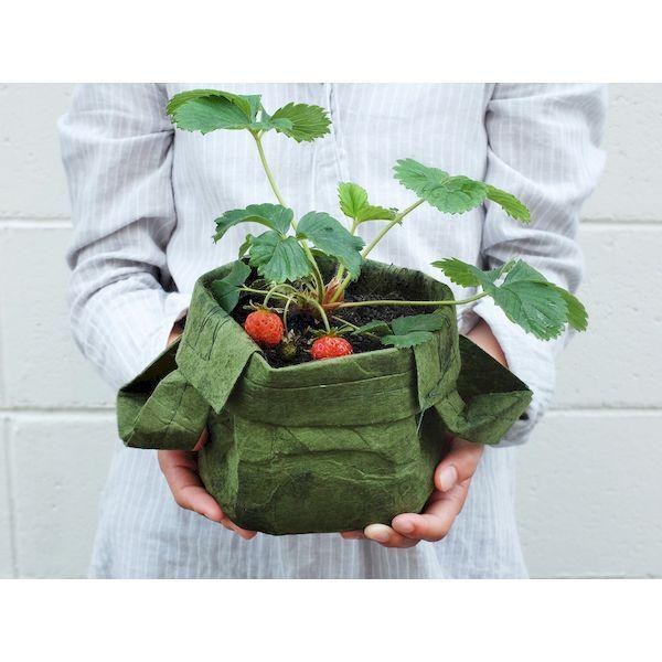 Walnut & Coメーカーお問い合わせ:072-703-2228【商品説明】●ルーツポーチはリサイクルペットボトルとリサイクル天然素材を混合して作られた不織布製の植木鉢です。通気性、透水性、排水性に優れ、植物の育ちが良いとプロの生産者達がプラ鉢に代わる鉢として使っています。●【特長】・通気性、透水性が良いので健康な細かい根が育ちやすく根腐れの心配がない。夏の高温時でも根が傷みにくい。・土中に鉢のまま植えれば根域制限ができる。植物の混在が防げて、水やりの手間も省ける。樹木や果樹の栽培に便利。・軽量かつ持ち手がついてるので移動・運搬作業が楽。陽に当てる向きを変えたい時や模様替えが簡単。・土の流出を防ぎ床が汚れにくいので、ベランダガーデニング・屋上菜園におすすめ。・鉢底に穴がないので鉢底からの害虫やナメクジ等の侵入が防げる。・びっしりと張付いた根詰りも鉢をほぐしたり、裂いて取り出せるので植え替えが楽。プラ鉢や素焼鉢などでは大変な作業。・欠けたり割れる心配がないので家の前やガレージに置いていても安心。・デザインがシンプルで植物が引き立つ。大小組み合わせることで自分好みの庭作りが簡単に楽しめる。・未使用時はたたんでしまえるので、かさばる事なく置き場所に困りません。使用後は一般ゴミとして出せるので処分も困りません。・ハンギングプランター、鉢カバー、収穫袋、コンポストバッグ、土、石などの入れ物等あらゆるガーデニングシーンで使えます。●【仕様】・カラー:Grey・サイズ:幅28.0x高さ26.0cm・容量:5galon/16L・タイプ:生分解性グレー(土中に埋めた場合、分解に要する時間:約3-4年)※土壌中で分解する生分解性素材です。ビニールポットにとって不可欠な植え替えといった煩雑な作業も必要とせず、ポットに入れたまま土壌に直植えできますので根を傷つけることなく成長不良や枯死の心配がいらないといった効果があります。土中に植え込て生地の内側と外側が土に接触することで分解をはじめます。※土中に埋めなければ分解しません。通常の鉢として使う場合は分解しません。●【注意】※ルーツポーチはリサイクル素材で作られた製品です。陶器鉢やプラ鉢のような耐久性や長期の美観維持をコンセプトにしておりません。作る過程で汚れが付着していたり縫い目のばらつきなどがあります。また鉢は消耗品であり、表面に生じるコケなどは自然による風合いであるとご理解のほどお願い致します。※ 縫製のずれ・糸のほつれ、形状違い、色むら、ロゴラベルのずれなど、製品にばらつきがあります。※ 白いチョークのような汚れや手書き文字がついてることがあります。これらは使用には全く問題ありません。※屋内で使用される場合は受け皿などに置いてご使用ください。Root Pouch ルーツポーチ 植木鉢 ガーデニング