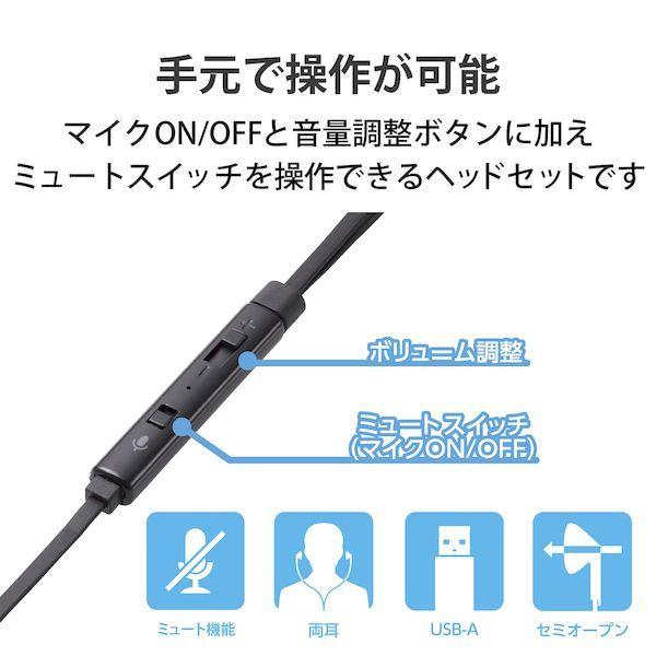 エレコムメーカーお問い合わせ:0120-898-794【商品説明】●オンラインゲーム、ビデオ会議・ビデオ通話、音声チャットでの使用に最適なミュートスイッチ付きヘッドセットです。●コンパクトに収納や持ち歩きができ、ハイブリッド勤務におすすめです。●髪型の乱れを気にせずに装着できます。●取りまわしやすく、からまりを防ぐフラットケーブルを採用しています。●耳を圧迫しない装着感のステレオセミオープンタイプです。●マイクON/OFFと音量調整を手元で操作できる便利なインラインコントローラーを採用しています。●USB接続なのでパソコンのヘッドホン端子を使わずにヘッドセットを使用可能です。
