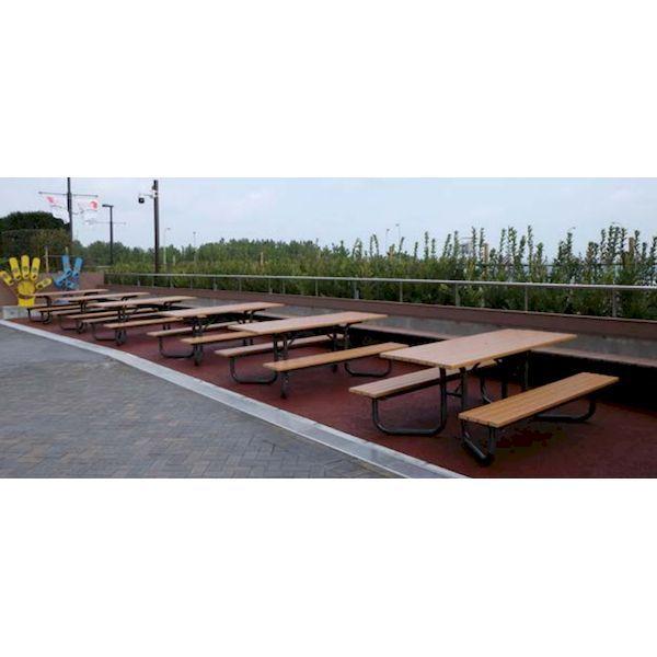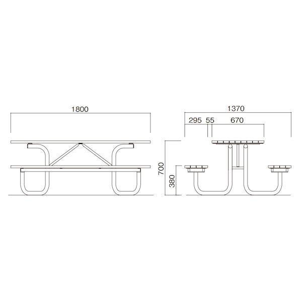 【商品説明】●商品特徴:再生木材を使用したテーブルベンチです。廃木粉と樹脂を複合化した再生木材を使用しています。耐水、耐久はもちろん、腐りません。廃木材と廃ABS樹脂を高度な配合技術をもって複合化した素材のRPウッド(再生木材)使用したベンチです。●用途:工場、商業施設、学校、公共施設、公園、サービスエリア、観光地、テーマパーク、お庭、ベランダ、病院、ホテル、レジャー施設、複合施設等●タイプ:ユニバーサルデザインタイプ●主材質:再生木材(RPウッド)●色:ブラウン(RPウッド)●W幅寸法(mm)::1800●H(SH)高さ寸法(mm):H700(SH380)●D奥行寸法(mm):1370●重量(kg):94●仕様詳細:天板:再生木材(RPウッド)/座:再生木材(EM/RPウッド)/脚部:Φ48.6鋼管 合成樹脂焼付塗装仕上●梱包数:2●グリーン購入法:グリーン購入法適合品●注意事項:※本製品は組立作業が発生します。同梱の組立説明書に沿って正しく組み立ててください。※火気厳禁 ※分解、改造をしないでください。破損、変形した場合は直ちに使用を中止して購入店へご連絡ください。※背や肘掛けに乗ったり、座面に立ち上がらないでください。※ネジは定期的にゆるみがないか点検(締め直す)して下さい。※再生木材は、設置環境によっては、経年変化により、色が退色、ヒビ、ササクレが発生する場合があります。あらかじめご了承ください。※再生木材は、リサイクル材を使用しているため、多少の不揃いが生じることがあります。材質の性質をご理解の上、あらかじめご了承ください。テーブルベンチ リサイクルベンチ 屋外ベンチ 屋内ベンチ 景観用品 学校ベンチ 施設ベンチ 公園ベンチ ミヅシマ工業 山崎産業 コンドル CONDOL テラモト TERAMOTO駅ベンチ バス停ベンチ 商業施設 休憩所 長椅子 ガーデンベンチ 屋外用ベンチ アウトドアベンチ ウッドベンチ 樹脂ベンチ