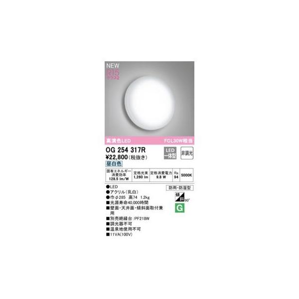 オーデリックメーカーお問い合わせ:03-3332-1123【商品説明】消費電力9.8W Ra94 ●LED ●クリル(乳白) ●巾φ285 高74 1.2kg ●光源寿命40,000時間 ●壁面・天井面・傾斜面取付兼用 ●別売絶縁台:PF218W ●調光器不可 ●温泉地使用不可 防雨・防湿型 90° 傾斜天井対応 その他