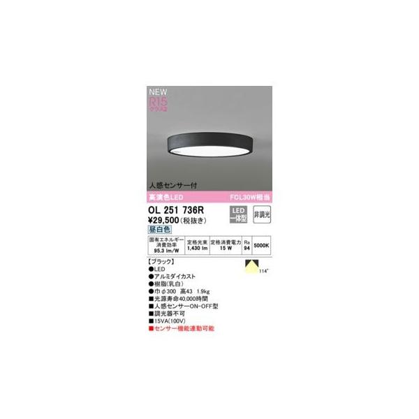 オーデリックメーカーお問い合わせ:03-3332-1123【商品説明】消費電力15W Ra94 【ブラック】 ●LED ●ルミダイカスト●樹脂(乳白) ●巾φ300 高43 1.9kg ●光源寿命40,000時間 ●人感センサーON-OFF型 ●調光器不可 ●センサー機能連動可能 その他 ベース_拡散