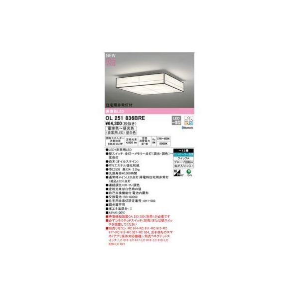 オーデリックメーカーお問い合わせ:03-3332-1123【商品説明】消費電力47W Ra94 【和風V】 ●LED+非常用LED ●壁スイッチ:全灯→メモリー点灯(調光・調色)→常夜灯 ●木(オイルステイン)●ポリエステル強化和紙 ●巾□539 高124 2.2kg ●光源寿命40,000時間 ●通常時メインLED点灯,停電時住宅用非常灯(組込LED)点灯 ●連続調光100-1%・調色 ●定格光束は白色時の値 ●自己点検機能付,電池内蔵形 ●交換電池:BB-03050 ●住宅用非常灯評定番号:AH1-003 ●調光器不可 ●停電検知装置OA 253 300(別売)が必要です ●必ずコネクテッドスイッチ(別売)または壁スイッチを設置してください ●リモコン別売:別売BT調光・調色リモコン居室CL用+別売コネクテッドスイッチ ~12畳 リモコン別売 クイックA グローブ回転A 虫が入りにくい 104% 45° 省エネ達成率 傾斜天井対応 その他