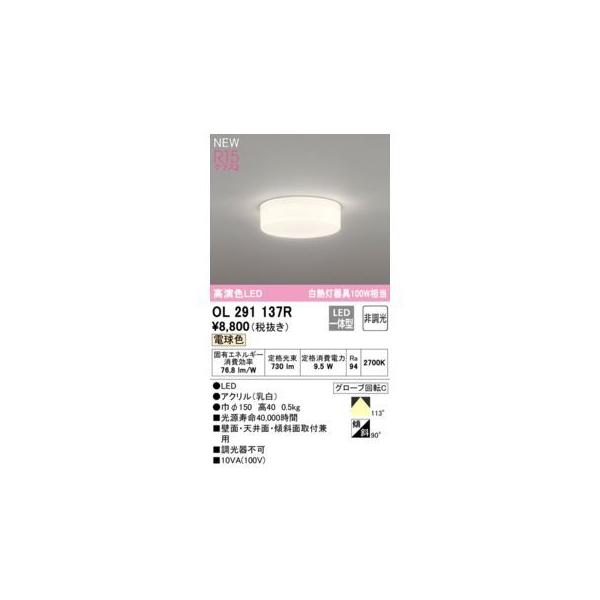 オーデリックメーカーお問い合わせ:03-3332-1123【商品説明】消費電力9.5W Ra94 ●LED ●クリル(乳白) ●巾φ150 高40 0.5kg ●光源寿命40,000時間 ●壁面・天井面・傾斜面取付兼用 ●調光器不可 グローブ回転C 90° 傾斜天井対応 その他 ベース_拡散
