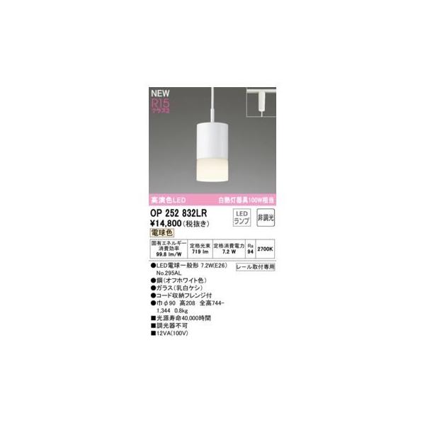 オーデリックメーカーお問い合わせ:03-3332-1123【商品説明】消費電力7.2W Ra94 ●LED電球一般形 7.2W(E26) No.295AL ●(オフホワイト色)●ガラス(乳白ケシ) ●コード収納フレンジ付 ●巾φ90 高208 全高744-1,344 0.8kg ●光源寿命40,000時間 ●調光器不可 レ-ル取付専用 その他