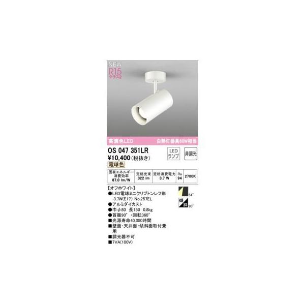 オーデリックメーカーお問い合わせ:03-3332-1123【商品説明】消費電力3.7W Ra94 【オフホワイト】 ●LED電球ミニクリプトンレフ形 3.7W(E17) No.257EL ●ルミダイカスト ●巾φ80 長150 0.8kg ●光源寿命40,000時間 ●壁面・天井面・傾斜面取付兼用 ●調光器不可 90° 傾斜天井対応 その他 タスク_ワイド