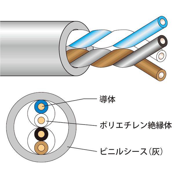 JAPPYメーカーお問い合わせ:06-6531-2747【商品説明】●JCS5504準拠品●漏話特性に優れる対より構造●電気特性に優れるポリエチレン絶縁体●商品コード:690-110-85219●品番:J-FCT 0.65 MMX 2P●導体外径:0.65φmm●対数:2P●絶縁体標準厚:0.2mm●シース標準厚:0.7mm●シース色:灰色●仕上外径:5.0φmm●導体抵抗:93.5Ω/km以下●耐電圧:AC350V/min●絶縁抵抗:5000MΩ/km以上