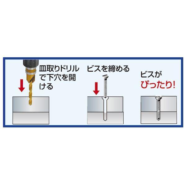 【商品説明】●業界初、オールハイス鋼の皿取りドリルなので永持ちチタンコーティングで更に超永持ち!●用途:アルミ、鉄、木材、合板、ステンレス高芝ギムネ製作所 2110 DIA-T パイロットビット (皿取り錐) サイズ:3×9mm 4989586133226 ドリル類 作業道具