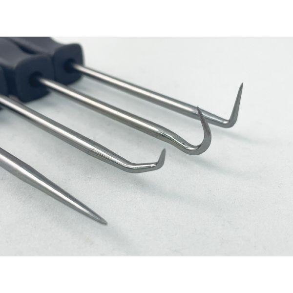 【商品説明】●小さなシールやコネクターの脱着に●軸部材質:クロームバナジウム鋼●4本入り●軸長(mm):約67 ●ハンドル長(mm):約68●作業にあわせた4タイプの先端形状です●コネクター端子、ストッパーの脱着に●ヘッドライトのスプリング脱着、小型ヒューズの取り外しケーブルの分離●ボルト・ナット・ワッシャー・パーツの回収●オイルバーナー・リレーボックスのスプリング取り外し●小さなシール、Oリングの脱着に●用途以外の目的には使用しないで下さい●バールやタガネのように使用しないで下さい●保護具と保護手袋、保護メガネをご着用下さい【セット内容/付属品】●ストレート、フック、コンビネーション、90度先曲がり