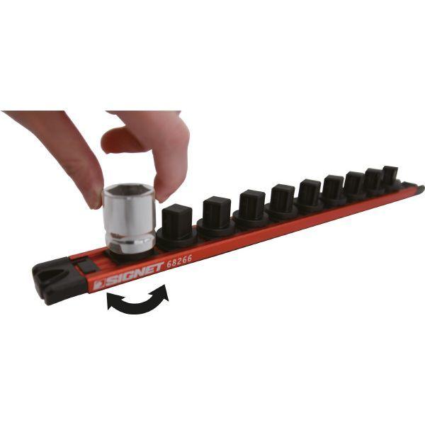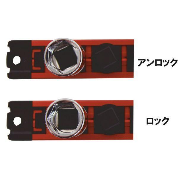 【商品説明】●ソケットのロック&リリースが簡単●差込角(DR):1/2●材質:アルミ(レール)・プラスチック(クリップ)・NdFeb(マグネット)●耐荷重:8kgまで●マグネット数:2枚●全長(mm):300●クリップ数(PC):10●重量(g):184●レール色:オレンジ●マグネット付きで便利なホルダー●片手でソケットの着脱が可能●ソケットを回転させてソケットをロック&リリース!!着脱がスムーズ●上下逆さまでもしっかりとソケットを保持●強力なマグネットによりキャビネット等に自由に取り付け可能●背面マグネット部は取付対象物を傷つけにくいようクッションで保護●差込角別にレールの色が異なり、ソケットの識別が容易●両サイドがネジ穴付きで、木材などマグネットの使用ができない場所にも取付可能※磁力が強力なため、磁気の影響を受けやすい機器類の近くで使用しないでください。※レールは非常に強いマグネットなので、指等を挟まないよう注意してください。※ソケットは付属しません。