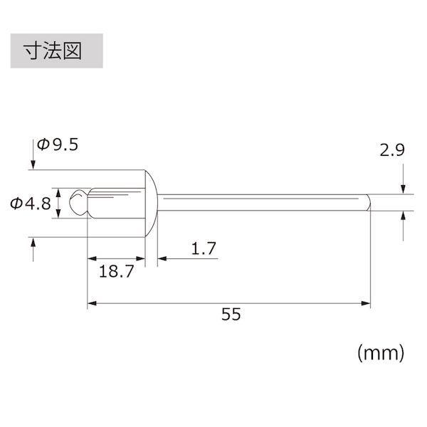 ●ブラインドリベットをご使用の際は、メーカー指定の適正かしめ板厚・下穴径の寸法を守り、安全率を十分に考慮して施工してください。