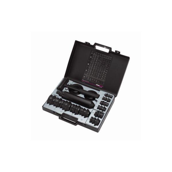 【商品説明】●ベアリング組込み時の軸受損傷を最小限にし、内径10~50mmの軸受を迅速、正確かつ安全に組み込むことができます。●インパクトスリーブとインパクトリングの適正な組み合わせによりベアリングの内外輪が均等に押し込まれ、取付け時の衝撃が軸受に悪影響を及ぼさない様に設計されています。●ナイロン製の特殊ハンマーにより衝撃をやわらげベアリングを保護。●耐衝撃力に強い材質の3種類のインパクトスリーブ。●33種類のインパクトリングで内径10~50mmまでのベアリングに対応。●オイルシールの取り付けにも使用可能。【材質】●鉄●セット内容:樹脂製インパクトリング(内径10-50mm) 33種類、アルミ製インパクトスリーブ 3種類、ショックレスハンマー 1本