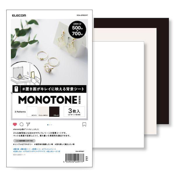 エレコム ELECOM DGA-BPBGMT 撮影用 背景 背景シート モノトーン ホワイト・アンティークホワイト・ブラック 大判 50cm×70cm