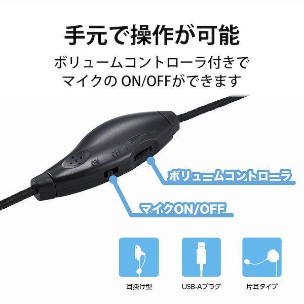 エレコム ELECOM HS-EH01UBK ヘッドセット 耳掛け 有線 片耳 左耳用 USB 軽量 黒 HSEH01UBK
