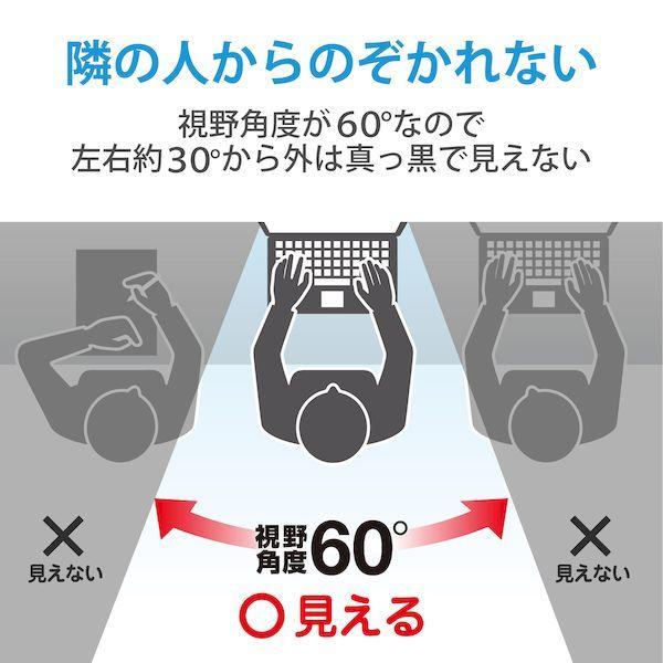 ●画面の正面を中心に60度(左右30度)より外の角度からは画面がまっ黒に見えるので、パソコン画面を見られる心配がありません。