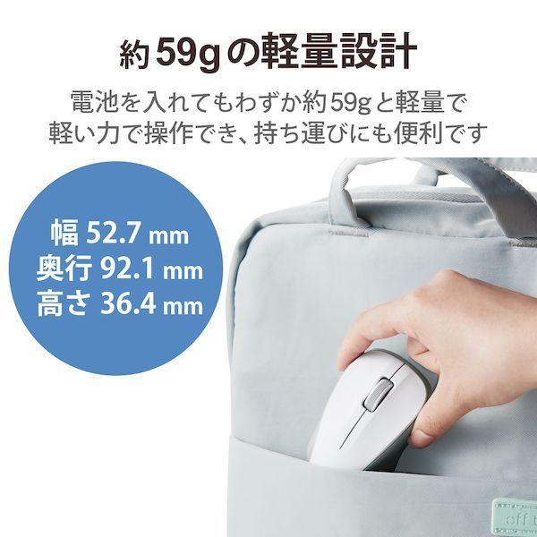 ●電池を入れてもわずか約59gの軽量設計。軽い力で操作できるため長時間の操作も快適で、持ち運びにも便利です。握る力に自信のない方や長時間マウスを操作される方におすすめです。