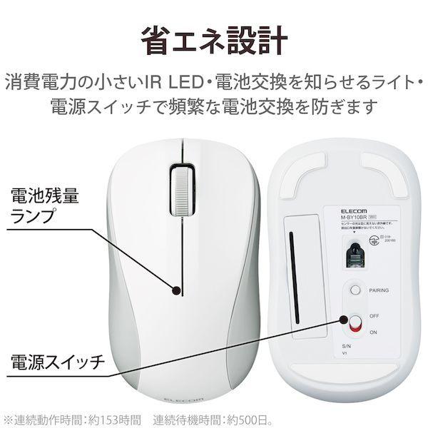 エレコム ELECOM M-BY10BRKWH ワイヤレスマウス Bluetooth 3ボタン 抗菌 軽量 IR LED Sサイズ ホワイト MBY1