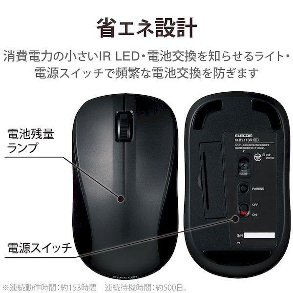 エレコム ELECOM M-BY11BRKBK ワイヤレスマウス Bluetooth 3ボタン 抗菌 軽量 IR LED Mサイズ ブラック MBY1