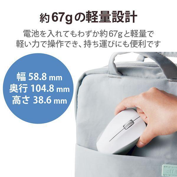 ●電池を入れてもわずか約67gの軽量設計。軽い力で操作できるため長時間の操作も快適で、持ち運びにも便利です。握る力に自信のない方や長時間マウスを操作される方におすすめです。