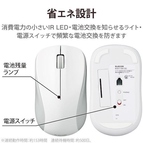 エレコム ELECOM M-BY11BRKWH ワイヤレスマウス Bluetooth 3ボタン 抗菌 軽量 IR LED Mサイズ ホワイト MBY1