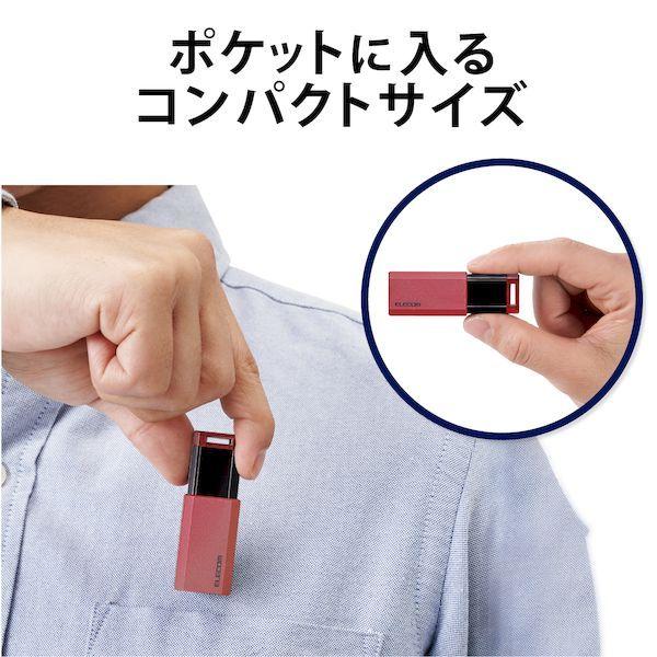 エレコム ELECOM MF-PKU3128GRD USBメモリ 128GB USB3.1 Gen1 対応 ノック式 ストラップホール付 レッド MF