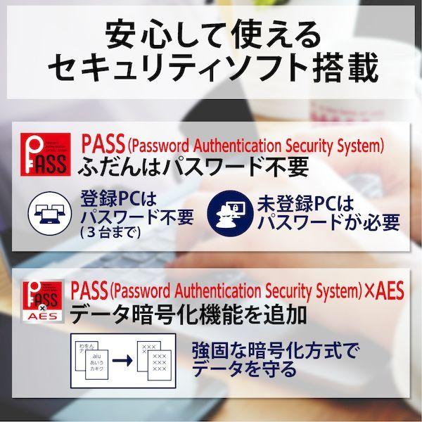 ●「PASS(Password Authentication Security System)×AES」使用時は、保存されたデータは、信頼性の高い強固な暗号化方式「AES256bit」で暗号化されるので、万一の紛失や盗難でも大切なデータの情報流出を防止します。