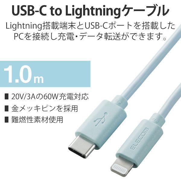 エレコム ELECOM U2C-APCL10BU ライトニングケーブル Type-C-Lightning 1m ブルー U2CAPCL10BU