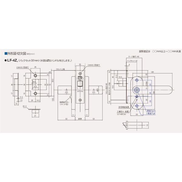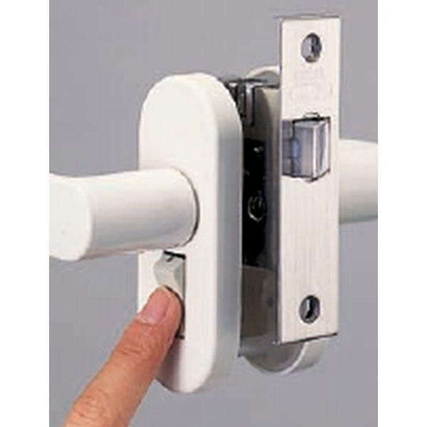 【商品説明】レバーハンドル浴室錠(間仕切錠)●フロント記号:LF●バックセット:32mm●取付可能扉厚:29mm以上~30mm未満●レバーハンドル:Z型(ABS樹脂、白色)(386P)●勝手:左右、内外共通●受座(ストライク)付き特長●耐水性と耐湿性を考慮し、錠本体はすべてステンレスと樹脂製です。●LF本体が極めてコンパクト(バックセット32mm)なので、浴室ドアの細い縦框への取付に最適です。●高齢者や身障者の方もワンタッチで操作できるスイッチ型の施開錠ボタンを使用。●非常時に備えて、室外側からはピンで解錠できる非常解錠装置付。