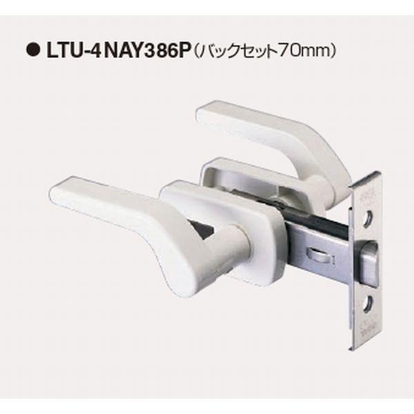 【商品説明】レバーハンドル浴室錠(間仕切錠)●フロント記号:LT●バックセット:70mm●取付可能扉厚:29mm以上~30mm未満●レバーハンドル:NAY型(ABS樹脂、白色)(386P)●勝手:左右、内外共通●受座(ストライク)付き特長●耐水性と耐湿性を考慮し、錠本体はすべてステンレスと樹脂製です。●LTU本体は細い角筒体状(25×19.4mm)なので、浴室ドアの横框への取付に最適です。●高齢者や身障者の方もワンタッチで操作できるスイッチ型の施開錠ボタンを使用。●非常時に備えて、室外側からはピンで解錠できる非常解錠装置付。注意●ラッチ本体の角芯の穴は四角タイプとなります。