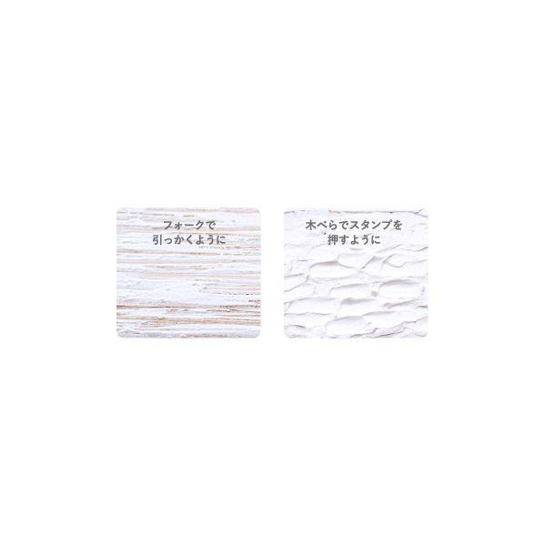 【商品説明】●DIYを安全に気軽に楽しむために原料にこだわった屋内向け本格派オリジナルペイント●漆喰のような質感でさまざまなテクスチャーが表現できます。●Step 1微小球のセラミックバルーンが入っている、白い漆喰のような質感のあるメディウムです。使用前に棒などでよくかき混ぜた後、使用分のみを出し原液のまま使用してください。●バターナイフでバターを塗るように、平行に押し当て滑らすように塗っていきます。ペインティングナイフでなくても、木べらなど平らなもので代用できます。●Step 3完全に乾いたあと、ミルクペイントを塗ります。※完全乾燥1~2日●塗装面積○0.5~1.5平方m(100ml・1回塗り)○1~3平方m(200ml・1回塗り)○2.3~6.7平方m(450ml・1回塗り)○6~18平方m(1.2L・1回塗り)●乾燥時間○10~20分(指触乾燥)○1~2日(完全乾燥)●使用用途○屋内外木部・紙・※金属・※モルタル※下地処理にマルチプライマーを使用●性質/成分○水性/合成樹脂(アクリル)・水・セラミックバルーン・顔料