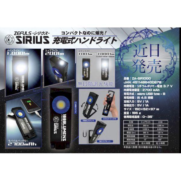 高儀 ZASR1000 ゼフルス 充電式ハンドライト SIRIUS