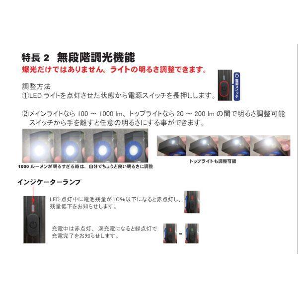 ●点灯時間:トップライト/200lm/約6h COBメインライト/1000lm-約3h