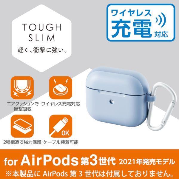 エレコム ELECOM AVA-AP3TSBU AirPods 第3世代 ケース カバー タフスリム 衝撃吸収 カラビナ付 ワイヤレス充電可 MagS