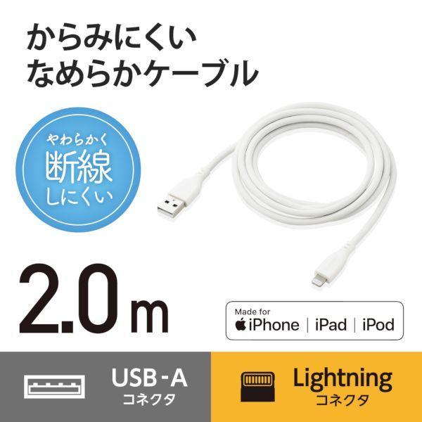 エレコム ELECOM MPA-UALSS20WH iPhone充電ケーブル ライトニング USB-A 2m 高耐久 iPhone iPad シリコン