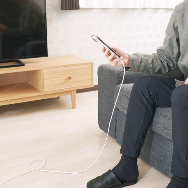 ●iPhoneやiPod、iPadなどのLightningコネクター搭載機器とUSB-A端子を搭載しているパソコン及び充電器を接続し、充電・データ通信が可能なLightningケーブルです。※iPadはパソコンからは充電できません。