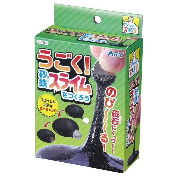 ■注意事項本商品の対象年齢は、14歳以上です子どもがマグネットセットを誤飲することで、開腹手術が必要となった事故が複数発生しています誤飲事故防止のため、対象年齢未満の子どもには使用させないでください【商品説明】●磁石にくっつく不思議なスライム●商品サイズ(単位mm):145x90x40mm●セット内容:ホウサ、砂鉄他●重量(g):56g●材質:ホウ砂、砂鉄、PVAのり、ネオジム磁石●包装形態:化粧箱●包装サイズ:145x90x40mm●生産国:日本