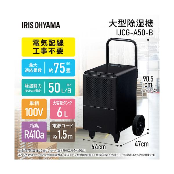 IRIS IJCG-A50 518097 業務用移動式大型除湿機 50L ブラック コンプレッサー式 IJCGA50