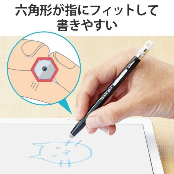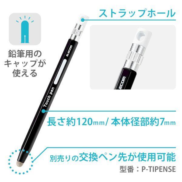 エレコム ELECOM P-TPENSEBK タッチペン スタイラスペン 導電繊維タイプ 六角鉛筆 ペン先交換可 ストラップホール付 iPad対応 ブ