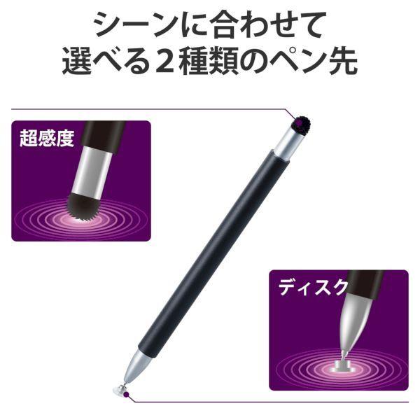 エレコム ELECOM P-TPSLIM2WYBK タッチペン スタイラスペン スリム 超感度/ディスクタイプ マグネットキャップ付 2Way iPa